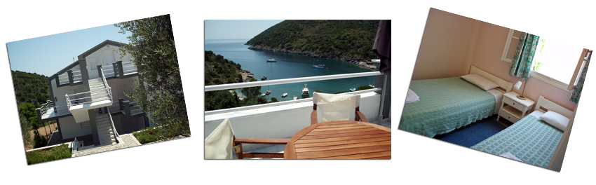 La villa sorge in luogo panoramico, con vista stupenda sulla Baia di Sarachiniko,una delle piu suggestive dell'isola.la sua costruzione e recente,risale al 1995: e composta da 7 appartamenti, di cui 6 per una famiglia di 2-3 persone ,ed uno piu grande all'attico per 3-4 persone.